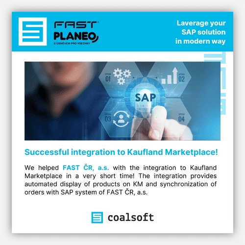 Coalsoft helped us with the integration to Kaufland Marketplace in a very short time! The integration ensures automated display of products on KM and synchronization of orders with our SAP system. We are looking forward to keep on using coalsoft’s expertise in the development of our SAP landscape